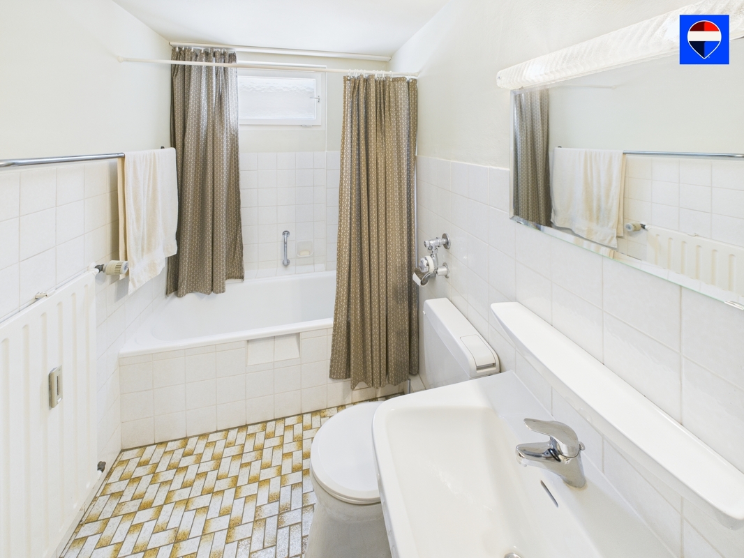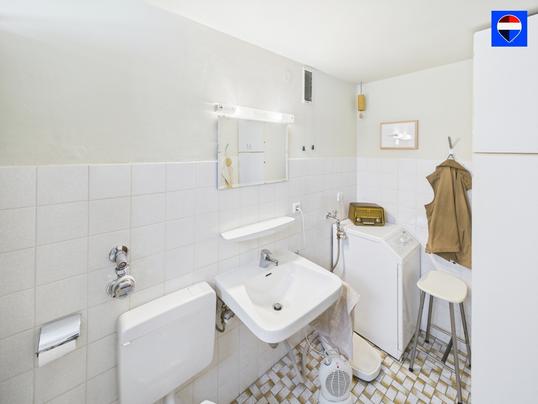 - TL Bad mit Badewanne, Miele Waschmaschine, Schrank, Vorhänge