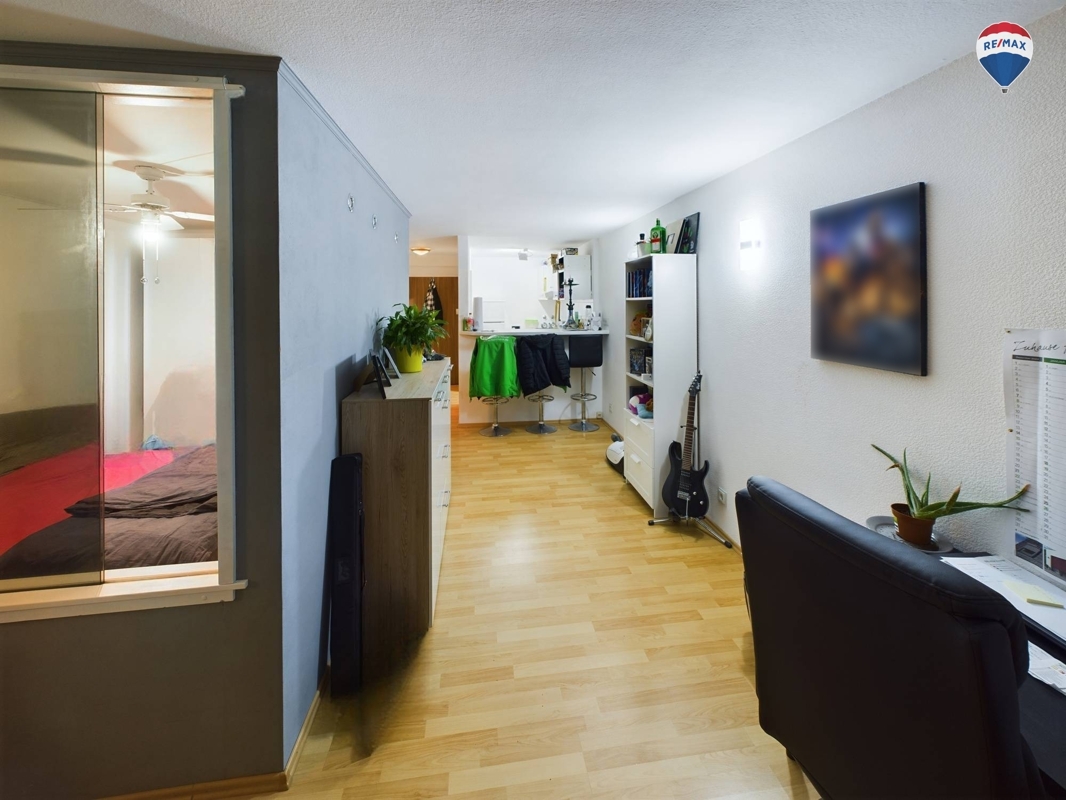Wohnbereich und Schlafzimmer: Die Wohnung verfügt über zwei gut geschnittene Zimmer, die mit hochwertigem Laminatboden ausgestattet sind. Diese sorgen für eine warme und einladende Atmosphäre. Das geräumige Wohnzimmer bietet ausreichend Platz für eine gemütliche Sitzecke und einen Essbereich. Das Schlafzimmer ist ebenfalls großzügig bemessen und bietet genügend Raum für ein großes Bett und einen Kleiderschrank.