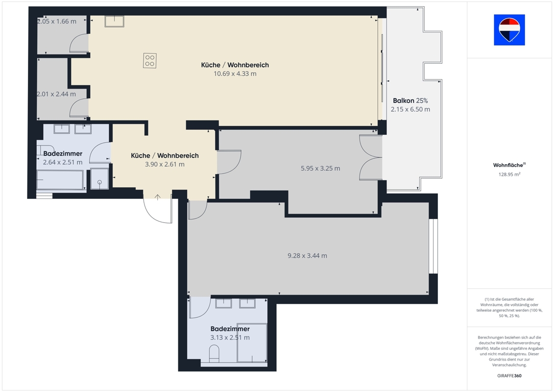 Die angebotene barrierefreie 3,5-Zimmer-Wohnung befindet sich im 1. Obergeschoss eines modernen Mehrfamilienhauses mit Aufzug in zentraler Stadtlage. Auf rund 128 m² Wohnfläche überzeugt sie durch eine durchdachte Raumaufteilung, helle Wohnbereiche sowie eine hochwertige Ausstattung.Das Herzstück der Wohnung bildet der großzügige Wohn- und Essbereich mit einer offenen Einbauküche und Zugang zum Balkon. Zwei Schlafzimmer sowie zwei moderne Badezimmer (jeweils mit WC, 2 Waschbecken und einer Badewanne, wobei das eine Badezimmer noch zusätzlich eine Dusche hat) bieten ausreichend Platz und Komfort. Zusätzlich stehen zwei Abstellräume innerhalb der Wohnung zur Verfügung. Ein Abstellraum mit Wasser- und Abwasseranschluss für Waschmaschine und Trockner.