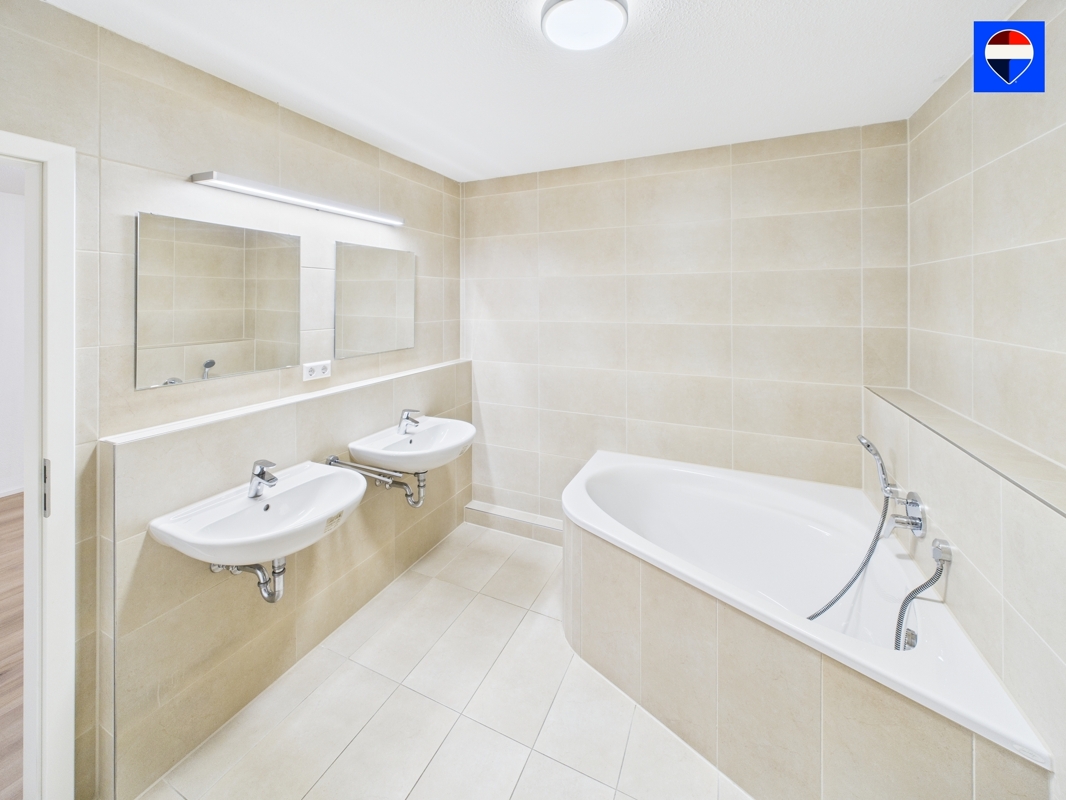 - 2 Badezimmer (je 2 Waschbecken, WC und Badewanne, ein Badezimmer zusätzlich mit Dusche)